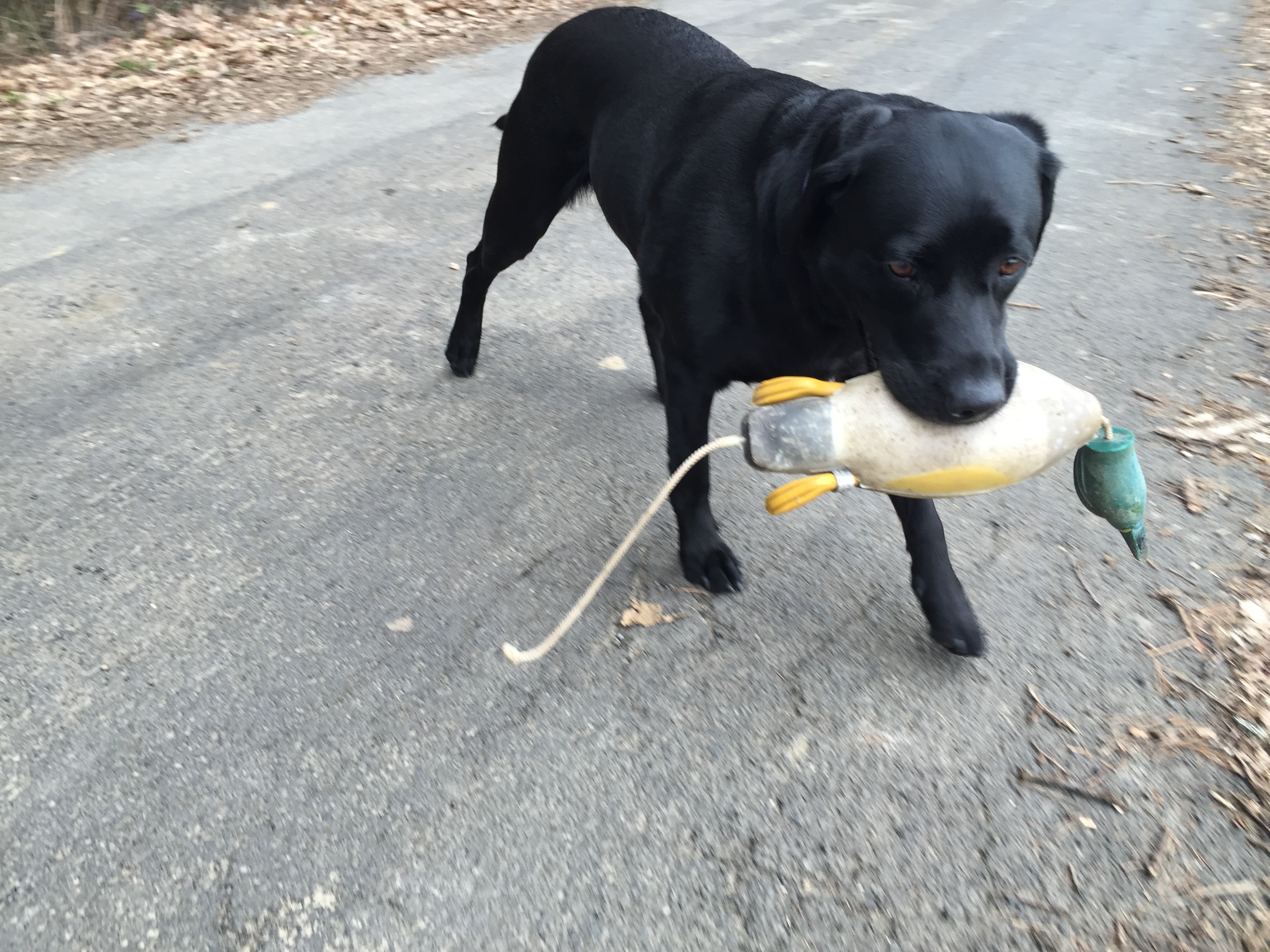 Also fiel meine Wahl auf die Dokken Dead Fowl Ente, der Kopf und die Füße sind aus hartem Plastik, also gewöhnen sich die Hunde schnell daran, dass das Schütteln ihrer Beute nicht ideal ist. Das Dummy ist aus hochwertigen weichen Kunststoff, das die Hunde gern ins Maul nehmen. Mit der angebrachten Schnur kann die Ente gut geworfen werden. Schnell stellten sich erste Erfolge ein, unsere Hündin trug die „tote Ente“ perfekt und nach einigen Wochen Training, apportierte sie das Dummy und gab es auch in die Hand ab.