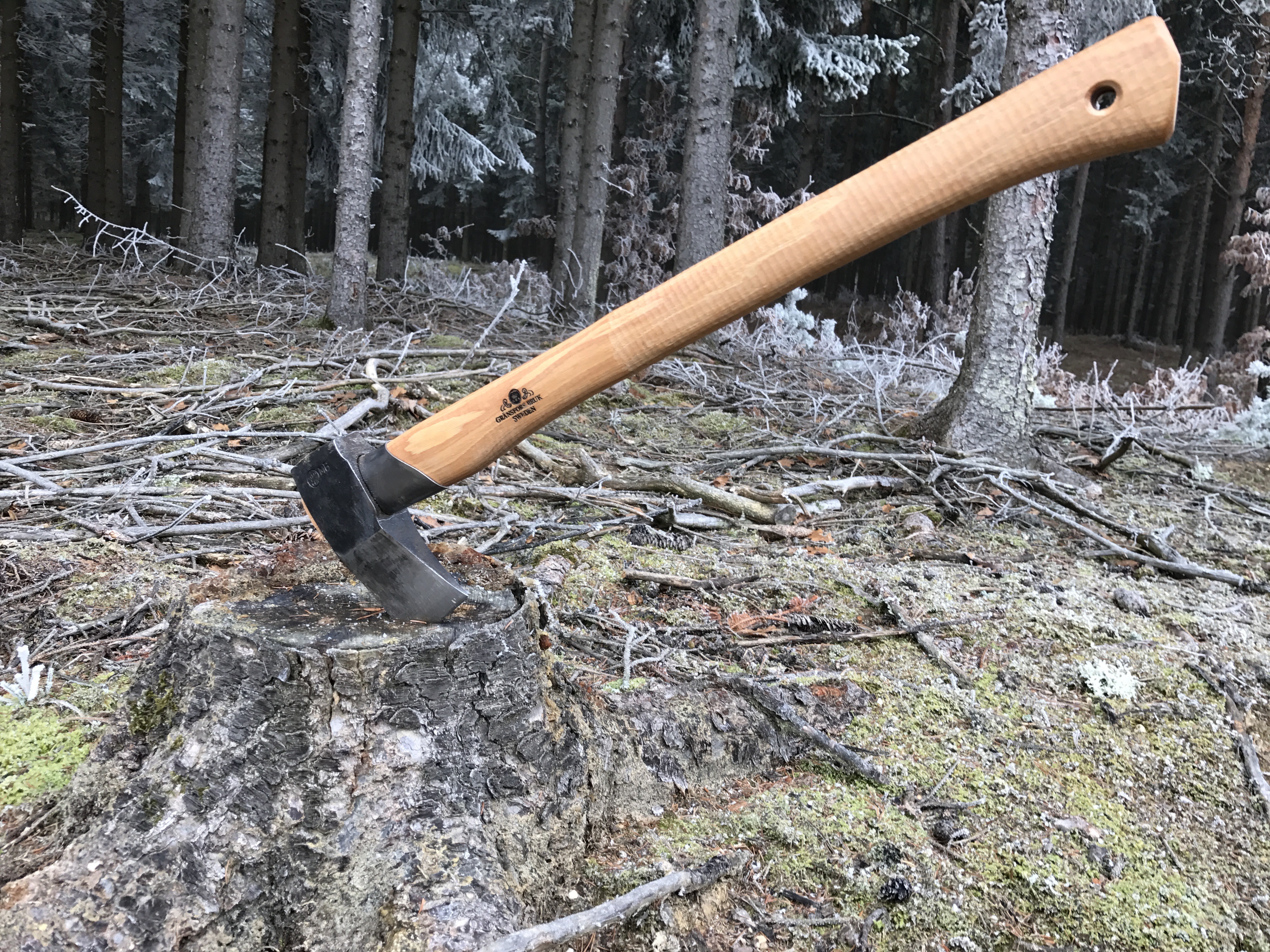 Eine gute Axt kann man immer brauchen. Egal ob beim Hochsitzbau oder anderen Revierarbeiten. Nach längerer Recherche entschied ich mich für eine Axt von Gränsfors Bruk. Die Firma hat ihren Sitz in dem schwedischen Dorf Gränsfors im Norden der Region Hälsingland. Seit mehr als 100 Jahren werden in der Ortschaft Äxte geschmiedet. Jedes Werkstück trägt die Initialen des Schmieds der es gefertigt hat.