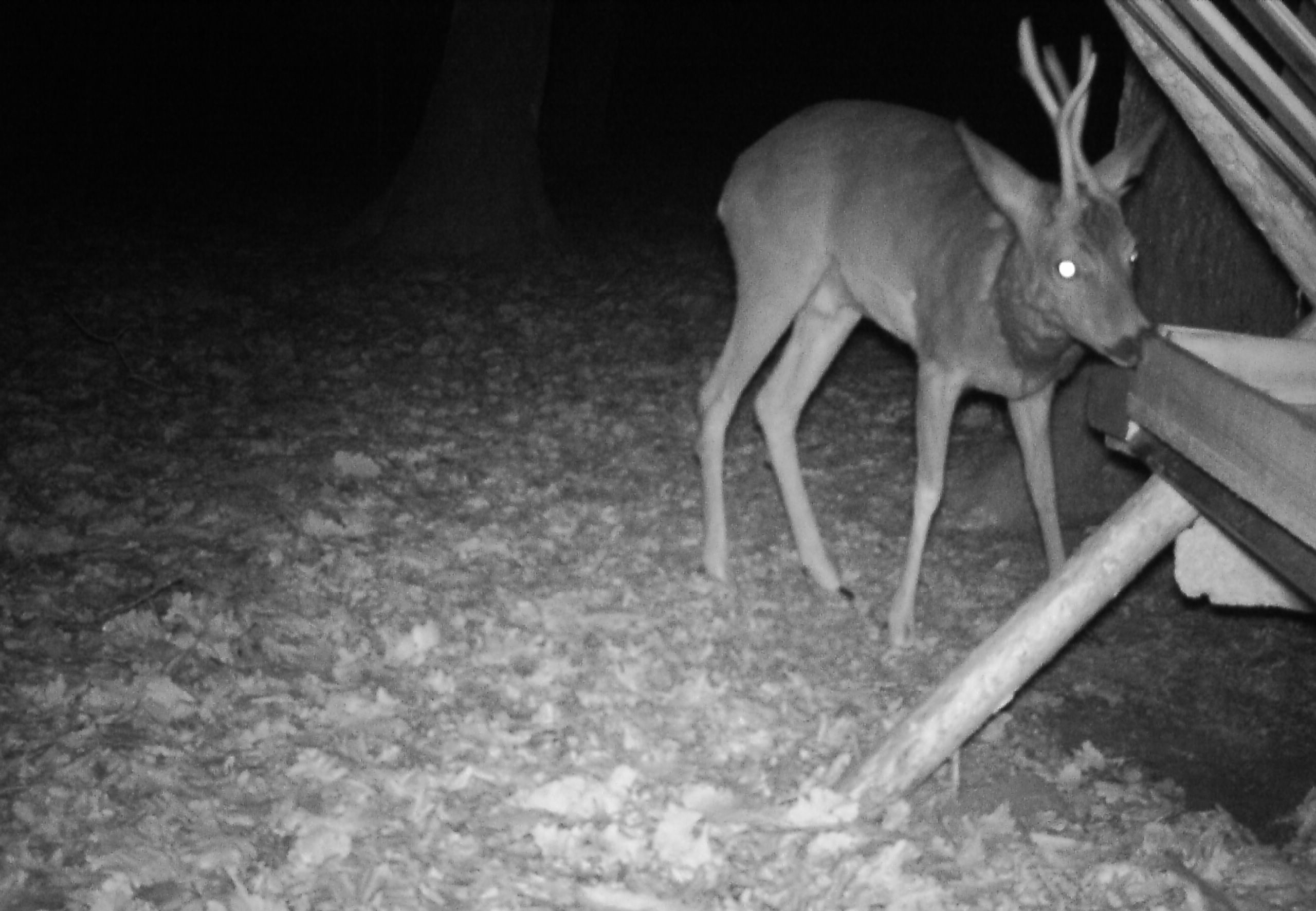 Ich hatte ihn einige Male auf der Wildkamera. Kein alltäglicher Bock, auf einer Seite eine hohe Gabel, auf der anderen drei Enden. Die Stangen eng beiinander, so machte er im Bast einen wirklich starken Eindruck, als er verfegt hatte, kam er mir dann wieder schwächer vor. Aber dann nahm die Kamera dieses Bild auf und ich war mir sicher, wenn ihn Diana meinen Weg kreuzen lässt, erlege ich den Bock.