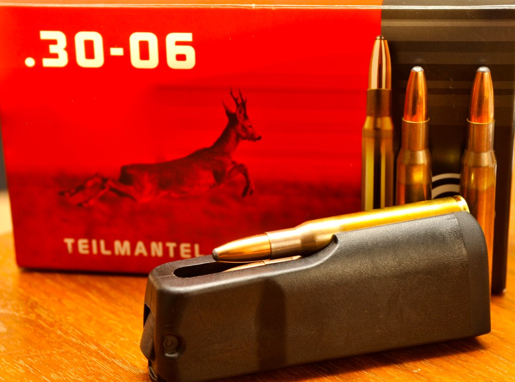 Alles was die 308. Winchester kann, kann die 30/06 Springfield auch, mit etwas mehr Energie. Deshalb verwende ich sie bei Drückjagden, wo ich im Vorjahr eine 120 Kilogramm Bache mit der Geco erlegen konnte, hier hatte ich das einzige Mal mit dieser Patrone keinen Ausschuss, weil ich die Sau etwas schräg getroffen hatte, sie zeichnete nach einigen Metern Flucht und verendete im Wundbett. Heuer konnte ich mit der Geco Teilmantel / Target 30/06 Springfield in Ungarn einen etwa 80 Kilogramm schweren Keiler strecken. Der Schuss ging hinters Blatt, der Keiler flüchtete noch etwa 50 Meter bis er im Wundbett verendete. Ich bin beim Schuss etwas zu weit hinten abgekommen, so dass Leber und ein Teil der Lunge zerstört wurden, es gab Ausschuss und genügend Schweiß, um das Schwein zu finden.